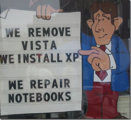 微軟Windows Vista第一年的成績並不是太好,以至於新漢普夏州的電腦商店A&D Computer竟然掛出了「已將Windows Vista掃地出門」口號的PC廣告.