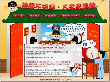 台灣微軟辦了一個活動,在至4月15日(二)止,只要檢舉符合1. 應用程式有繁體中文版;2. 應用程式可在網站上搜尋到相關訊息(例如:產品試用版本、詳細規格等);3. 此應用程式曾經推出過Windows XP版本等三項條件。提出與Windows Vista不相容的應用程式;若7天內沒有其他人提出使其相容的解決方案,就可獲得新台幣1,000元。