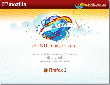 Firefox 3 下載日 協助 Mozilla 創造世界紀錄的你,Mozilla 為表感謝各位的支持,特別在 Download Day 的頁面中建立了一個頒發證書的頁面。於當天有下載 Firefox 3 的你可到以下連結內輸入自己的名字,然後就可獲得 Firefox 3 給予閣下的銘謝證書的PDF檔案。