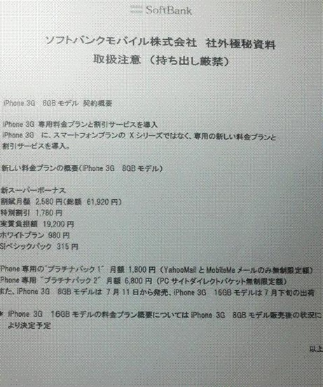 * iPhone專用料金1:每月1800日圓(YahooMail和MobileMe Mail包月)