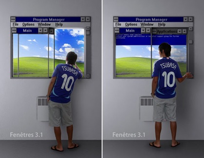 法國設計師John Nouanesing推出的Fenetres 3.1(fenetre就是法語的windows),應該算是向視窗致意的幽默作品吧,在窗戶上方加上視窗的標題欄,窗簾樣式則選用電腦當機時的錯誤畫面,用位於右邊窗戶的scroll按鍵控制,整組窗戶設計可說是幽默十足,可惜的是,Nouanesing的這項作品似乎無意對外販售。