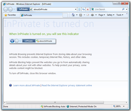 微軟提前放出了IE8的新功能,「私人瀏覽模式」(In-Private)的截圖,IE8將包含允許自動清除所有痕跡,包括瀏覽歷史、Cookie、以及任何你輸入的信息的功能.