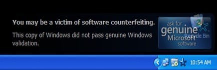 被盜版Windows XP用戶深惡痛絕的Windows Genuine Notification提醒軟件又有了新版本, 此WGA更新將效仿Windows Vista環境。具體來言,在這款軟件被安裝到計算機並檢測到盜版存在後, 用戶被視為「非正版」用戶,那麼他們將看到屏幕背景變成黑色,在右下角位置,將出現半透明效果的「Windows可能是盜版」警告。而新版本將專門針對XP專業版用戶。